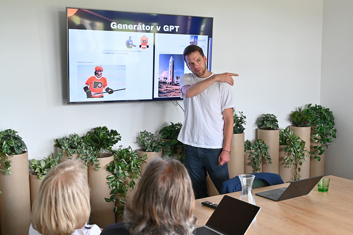Odpolední část nabídla praktický workshop vedený Lukášem Eršilem, zaměřený na kreativní práci s AI nástroji. Druhý workshop pod vedením KARPu seznámil zájemce s interaktivní prezentací platformy VR Profilab, která pomocí virtuální reality přibližuje nejžádanější profese v regionu.